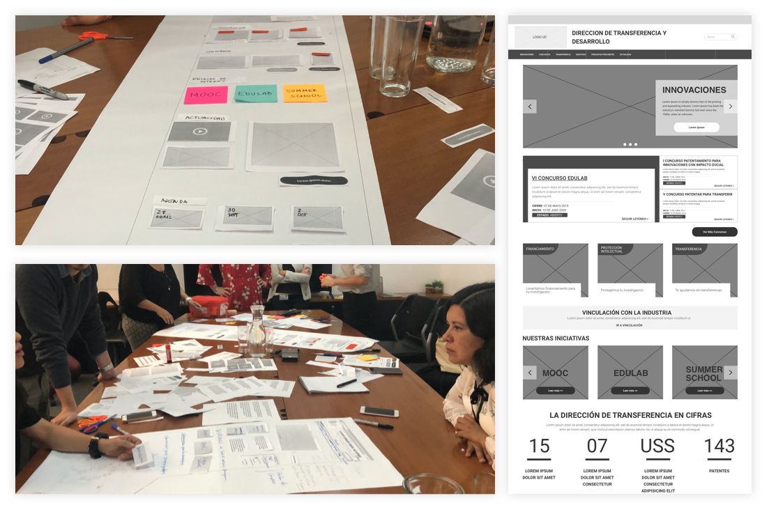 Conocer e identificar las necesidades de los usuarios de la Dirección de Transferencia y Desarrollo también fue uno de nuestros desafíos, por lo que implementamos un acabado proceso de investigación, que incluyó encuestas a usuarios, entrevistas a usuarios y stakeholders; para finalizar con un ejercicio de mapa de empatía, el que nos permitió definir de mejor manera quiénes y cómo son las personas que se relacionarán con la plataforma.