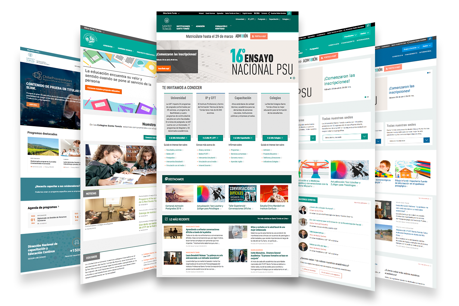 Santo Tomás solicita el desarrollo de un ecosistema que contemple una variedad de sitios relacionados al mundo universitario. Esto involucra desde sitios para centros de investigación hasta otros apuntando a usuarios egresados.