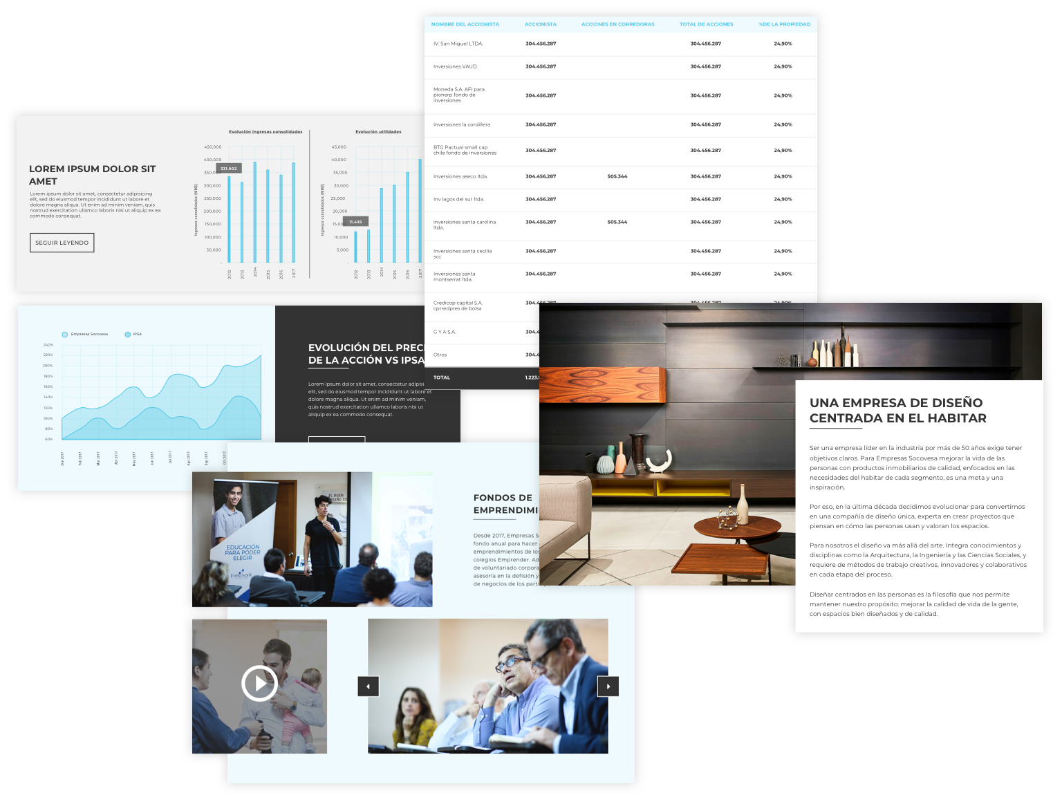 Nos propusimos modernizar el sitio web corporativo, ampliar la mirada y alinear a Empresas Socovesa con las mejores compañías de distintas industrias en su forma de establecer y ayudar a la construcción de identidad y posicionamiento.