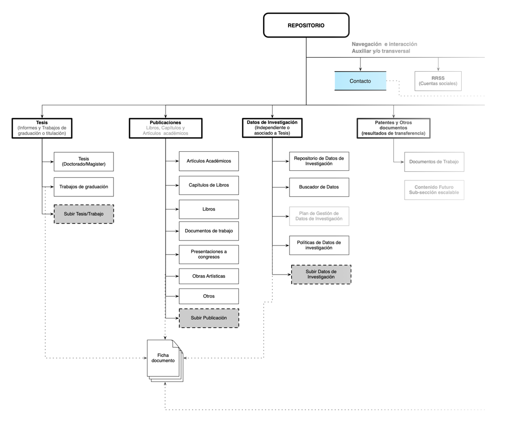 Nuestro gran foco fue posicionar al Repositorio Académico UC como un catálogo digital moderno y de vanguardia. Para esto, fue necesario diseñar una interfaz de acuerdo a las directrices del Kit Digital UC; que fuera fácil de usar, moderna y atractiva para visibilizar de forma innovadora la producción académica.
