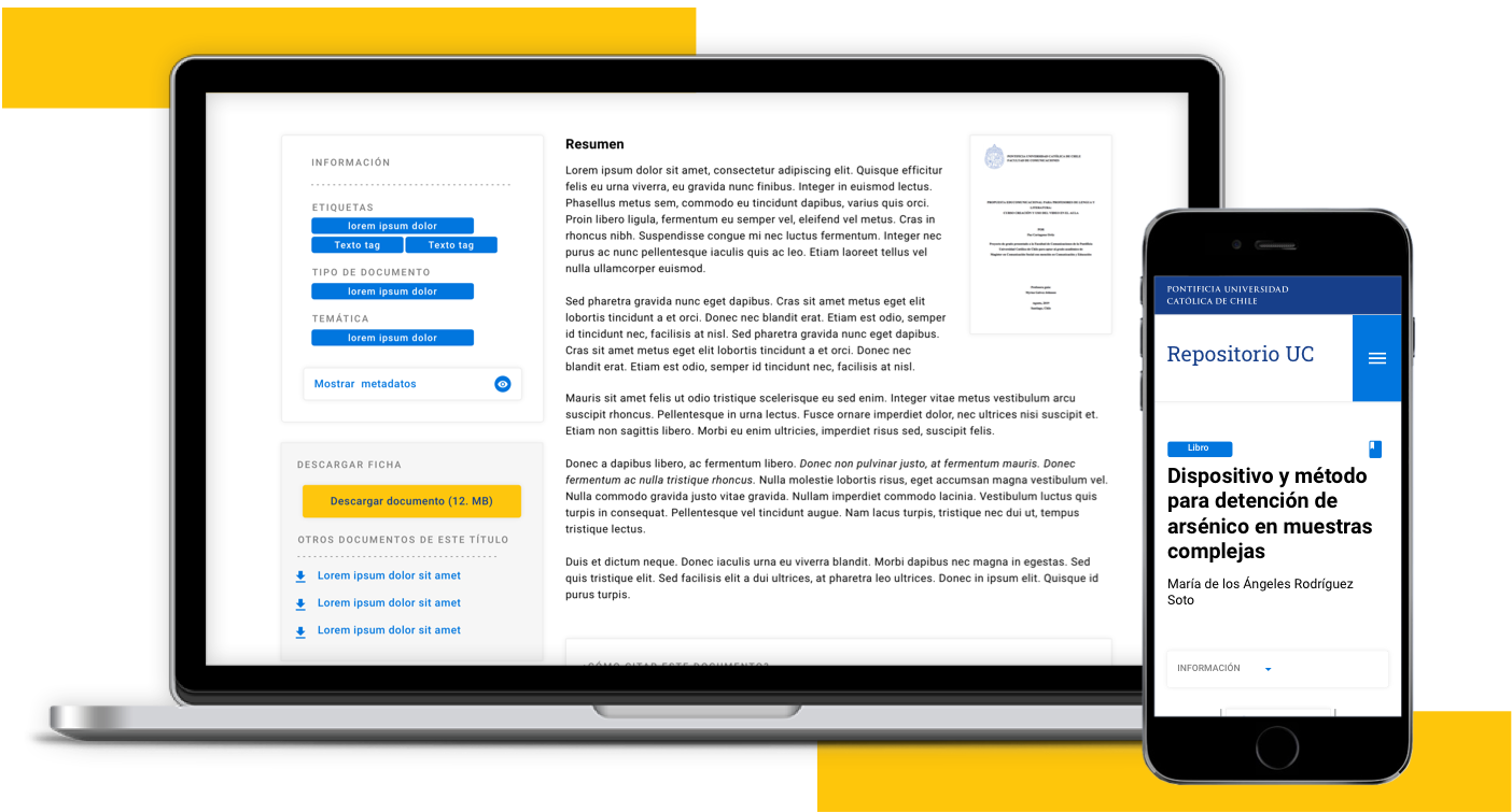 Al trabajar de la mano con el Kit Digital de la Universidad Católica, logramos diseñar un sitio responsive, flexible, accesible y escalable que permite entregar la propuesta de valor de Repositorio Académico UC, visibilizando su contribución a la investigación e integrado a otras APIs y plataformas.