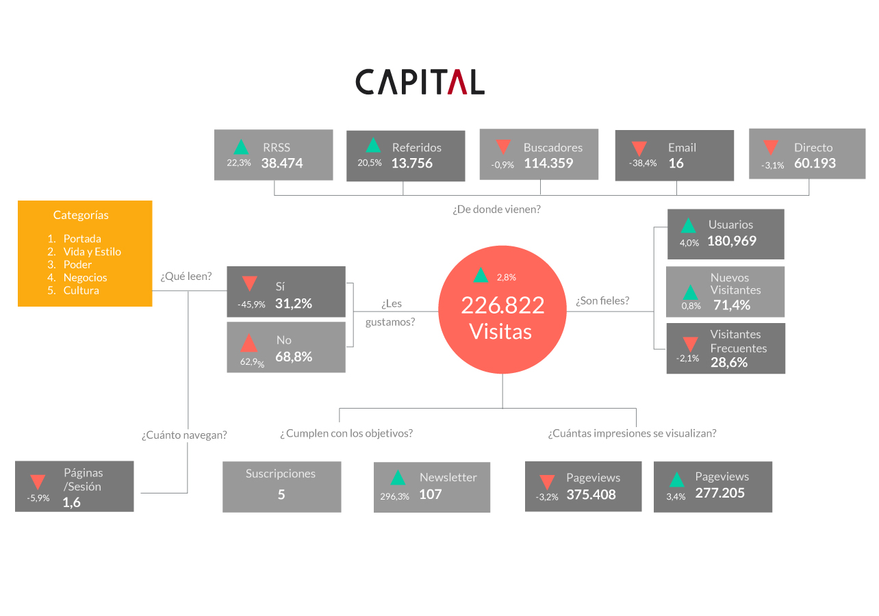 Cumpliendo con las metas propuestas en un plazo récord. Aumento en 300% en el número de las visitas al sitio web de la Revista Capital antes del plazo fijado al inicio de la estrategia.